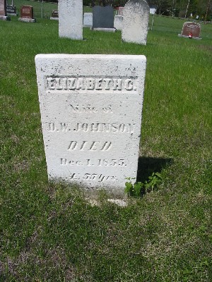 | Johnson | Elizabeth C. | Died Dec. 1, 1855. Aged 55 years | Wife of D.W. Johnson |
