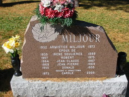 Daughter of Armistice Miljour and Irene Soulieres; interred at Ormstown |